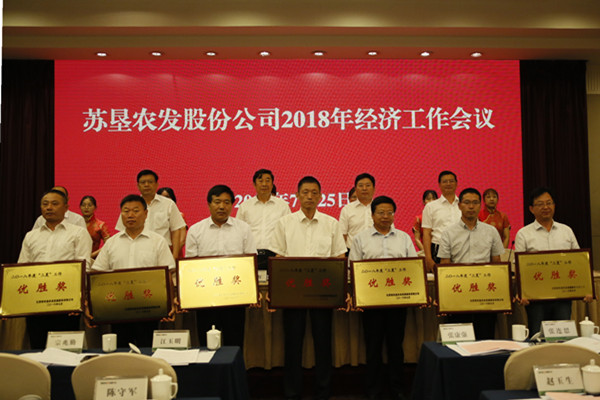 會(huì )議期間,蘇墾農發(fā)黃海分公司、蘇墾農發(fā)東辛分公司、蘇墾農發(fā)臨海分公司與大華種業(yè)集團等四家單位作了交流發(fā)言。會(huì )議隆重表彰了一批上半年工作業(yè)績(jì)突出的先進(jìn)集體,授予7家分公司2018年度“三夏”工作優(yōu)勝獎、6家分公司2018年度拓展基地“三夏”工作優(yōu)勝獎、3家分公司2018年度小麥高產(chǎn)獎、10家分公司2018年度夏熟效益獎、4家分公司2018年度拓展基地夏熟效益獎。7月24日晚,還專(zhuān)題召開(kāi)蘇墾農服工作推進(jìn)會(huì ),就下一階段農業(yè)社會(huì )化服務(wù)體系建設工作進(jìn)行了部署要求。