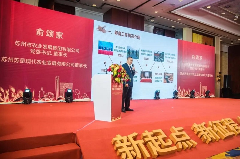 蘇州農發(fā)集團董事長(cháng)、蘇州蘇墾董事長(cháng)俞頌家作新公司籌建情況的匯報,從公司籌備工作情況、公司概況和服務(wù)內容、發(fā)展目標和未來(lái)展望等方面詳細介紹了新公司的情況。