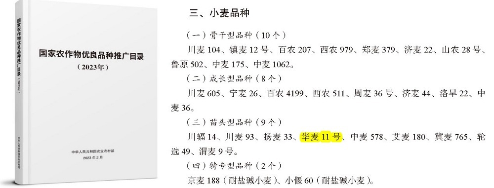華麥11號入選《國家農作物優(yōu)良品種推廣目錄》名單