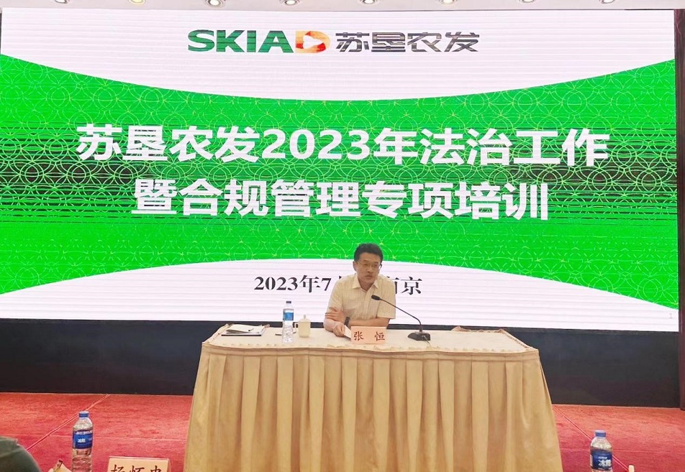•        為進(jìn)一步深化推進(jìn)公司法治建設,提升公司總部及下屬各單位法治及合規管理水平,7月27日至28日,蘇墾農發(fā)在南京舉辦法治工作暨合規管理專(zhuān)項培訓,公司黨委委員、副總裁、董事會(huì )秘書(shū)張恒出席會(huì )議并講話(huà)。