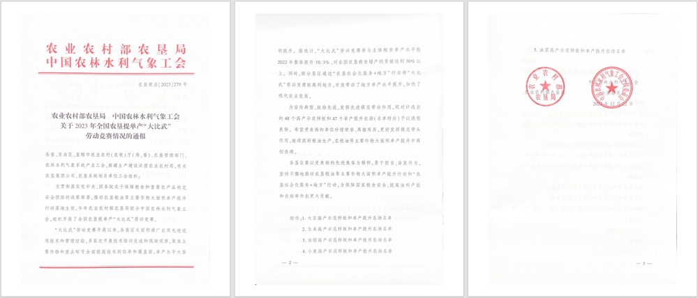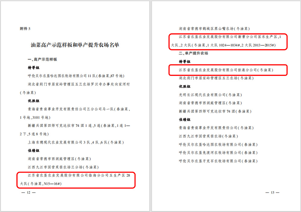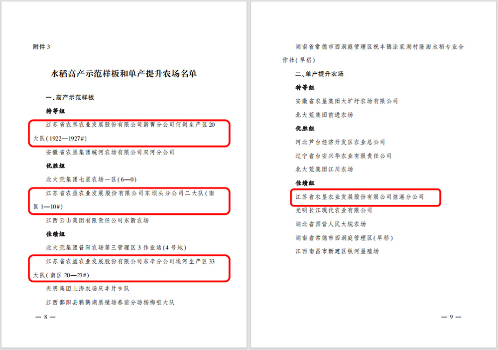 •        近日,農業(yè)農村部農墾局聯(lián)合中國農林水利氣象工會(huì )公布了2023年全國農墾提單產(chǎn)“大比武”勞動(dòng)競賽結果,經(jīng)測產(chǎn)驗收、綜合評審,共評選出48個(gè)高產(chǎn)示范樣板和47個(gè)單產(chǎn)提升農場(chǎng)。蘇墾農發(fā)6個(gè)示范田入選高產(chǎn)示范樣板、3家分公司入選單產(chǎn)提升農場(chǎng)。