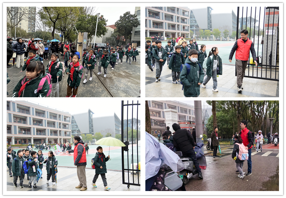 用心“護學(xué)”,為愛(ài)“站崗”。每到上學(xué)、放學(xué)高峰期,南師大附屬中學(xué)新城小學(xué)、金陵中學(xué)河西分校小學(xué)部的校門(mén)口都很擁堵,車(chē)流量大,來(lái)往人員眾多?;顒?dòng)當日,志愿者們不畏嚴寒早早來(lái)到校園門(mén)口,開(kāi)展“護學(xué)崗”志愿服務(wù),疏導學(xué)校周邊的車(chē)輛和人員,提醒接送孩子的家長(cháng)不要扎堆,引導放學(xué)的孩子到安全區域行走,時(shí)刻提醒騎電動(dòng)車(chē)、摩托車(chē)的家長(cháng)注意雨天行車(chē)安全,確保學(xué)校周邊交通安全有序,為師生、家長(cháng)的安全出行筑起一道“綠色”通道。