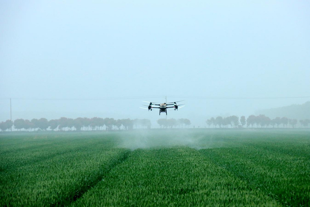 在東辛海南生產(chǎn)區41大隊小麥田,飛防人員正熟練地操控一架架載滿(mǎn)農藥的無(wú)人機,往返穿梭,均勻地噴灑薄霧狀藥液,實(shí)施“一噴三防”生產(chǎn)作業(yè)。一層薄薄的白色水霧覆蓋在麥苗上,為麥苗穿上了病蟲(chóng)害“防護裝”?!?1大隊今年種植小麥1309畝,根據農場(chǎng)黨委黨員冬訓計劃安排,分公司黨工委組織我們對‘一噴三防’進(jìn)行技術(shù)培訓,講解了防治小麥赤霉病安全用藥注意事項,‘一噴三防’能夠有效起到增粒、增重、防早衰的效果,大大提高生產(chǎn)效率,降低田間管理成本,我對今年夏收小麥穩產(chǎn)增收充滿(mǎn)了信心”,41大隊隊長(cháng)王緒兵說(shuō)。